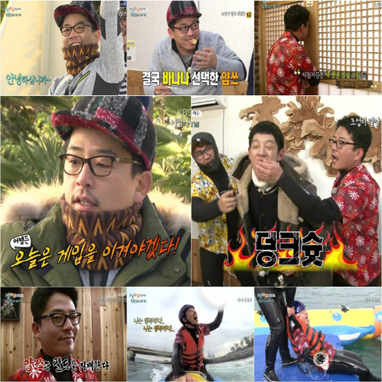 여수 오동도의 한 전망대에 모여든 멤버들이 2015년을 알리는 일출을 바라보며 감탄을 하는 사이 이때 김준호는 “뒤에 지금 배가 많이 지나가요.”라며 조업을 예상하는 예사롭지 않은 촉을 세우기 시작, 이어진 점심 복불복에서 지능적인 물귀신 작전으로 안방극장을 발칵 뒤집어 놓았습니다.