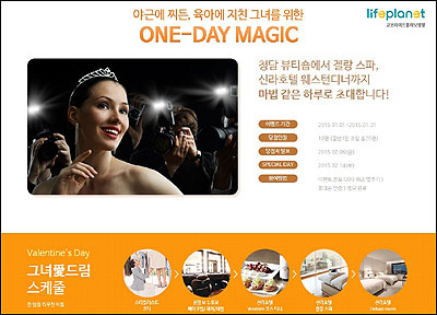지난 1일부터 라이프플래닛 홈페이지에서 진행 중인 ‘그녀愛드림’ 이벤트는 야근과 육아에 지친 여성들이라면 누구나 꿈꾸는 마법 같은 하루를 선사하기 위해 기획됐다. 바쁜 일상 탓에 평소 찾기 어려웠던 고급 스파와 뷰티숍, 레스토랑, 리무진 서비스, 특급호텔 숙박권 등이 이벤트 당첨자에게 모두 제공된다.