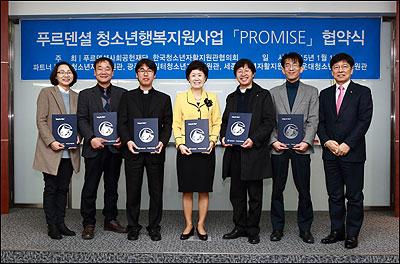 지난 15일 푸르덴셜타워에서 개최된 협약식에는 푸르덴셜사회공헌재단 손병옥 이사장, 김용태 상임이사, 한국청소년자활지원관협의회 원순철 협의회장, 관악지역자활센터 김승오 센터장, 광주북구일터지역자활센터 서유미 센터장, 세종지역자활센터 윤성웅 센터장, 해운대지역자활센터 이윤호 센터장 등이 참석해 지역 내 교육복지학교 청소년의 진로교육을 위해 상호 협력하기로 다짐했다.