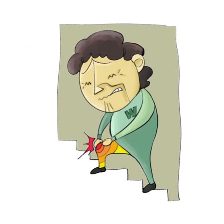 또한 계단을 내려올 때 무릎 앞쪽이 시큰거리는 통증이 느껴진다면 슬개골의 연골연화증을 의심할 수 있다. 가급적 계단을 피하고 의자에 앉아 TV를 보면서도 무릎을 구부렸다 펴는 대퇴사두근 근력강화운동이 도움이 된다.
