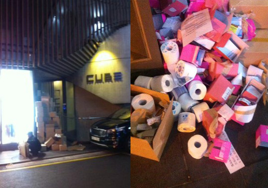최근 인터넷에 비투비 소속사 큐브 엔터테인먼트 사옥 입구 앞에 택배 상자가 잔뜩 쌓여있는 모습이 찍은 사진이 오르면서 갈등은 수면위로 떠올랐다. 상자들은 일부 지오디 팬들이 비투비가 공식색을 하늘색으로 선정한 데 대한 항의의 의미로 보낸 것으로 알려졌다. 몇몇 비투비 팬들이 ‘택배 테러’라면서 공개한 사진을 보면 상자 안에는 항의문과 두루마리 휴지 같은 내용물들이 담겼다.