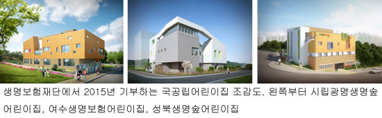 경기도 광명시에 건립한 시립광명생명숲어린이집은 지상3층, 연면적 1091.82㎡ 규모에 정원 138명으로 기부채납액은 22억5000만원이다. 서울 성북구의 성북생명숲어린이집은 지하1층~지상3층, 연면적 889.37㎡ 규모에 정원 79명으로 기부채납액은 22억원. 전남 여수시의 (가칭)여수생명보험어린이집은 지상3층, 연면적 703.04㎡ 규모에 정원 85명으로 기부채납액은 16억2000만원이다.