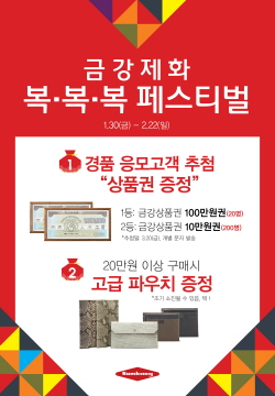 오는 30일부터 다음달 22일까지 구매고객 중 추첨을 통해 1등(20명)에게는 금강상품권 100만원, 2등(200명)에게는 금강상품권 10만원 등 총 4천만원의 금강상품권을 증정한다. 전국 금강제화, 랜드로바, 브루노말리 매장에서 진행한다.