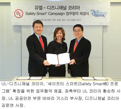 [쿠키뉴스=박주호 기자] 세계 최고 권위의 안전 규격 개발 및 인증기관인 UL은 디즈니채널 코리아와 함께 안전교육 캠페인인 ‘세이프티 스마트(Safety Smart) 프로그램’을 확장하는 업무 협약식을 가졌다고 30일 밝혔다.