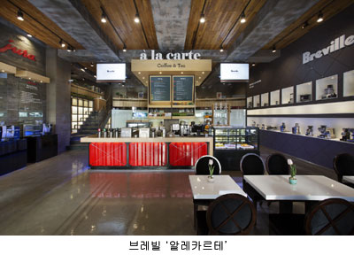 ‘알라카르테’에서는 브레빌의 커피머신, 주서기, 그릴 등으로 만든 커피, 리부팅 주스, 샌드위치 등의 메뉴를 본인의 스타일의 맞게 주문해 맛볼 수 있다. 방금 맛본 음식을 만드는데 사용된 가전제품을 직접 보고 사용법 등의 설명까지 들을 수 있어 여성들에게 큰 인기를 끌고 있다. 또한 카페 내 쿠킹클래스 존에서는 브레빌 제품을 활용한 레시피와 제품 사용 노하우를 알려주는 쿠킹클래스와 세미나가 정기적으로 개최되고 있다.