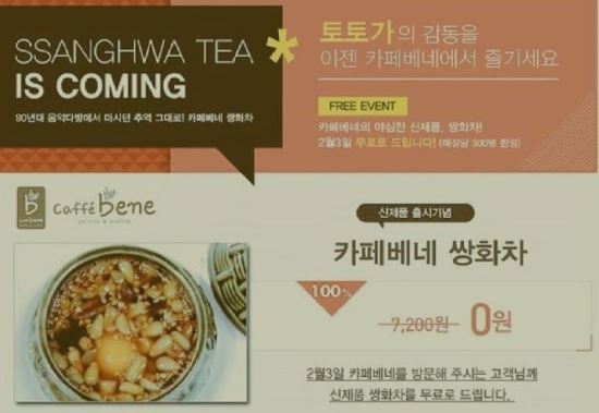 [쿠키뉴스=조현우 기자] ‘카페베네가 쌍화차를 무료로 나눠준다?’