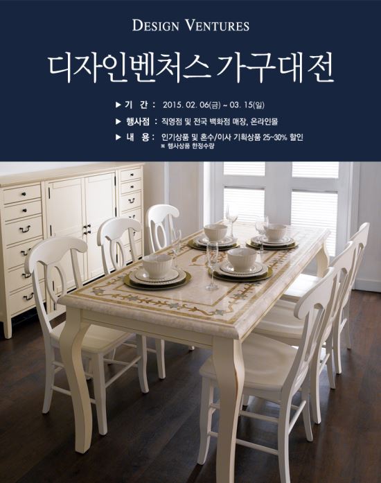 [쿠키뉴스=김 난 기자] 국내 종합가구 브랜드 디자인벤처스가 쌍춘년 웨딩 특수를 앞두고 38일간 역대 최고 규모의 ‘가구대전’을 실시한다.