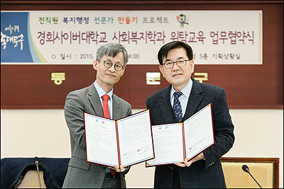 이번 협약은 동대문구청이 경희사이버대의 우수한 교육 콘텐츠를 통해 지역 사회가 요구하는 사회복지 등 다양한 분야의 수요에 대응할 수 있는 ‘전 직원 복지행정 전문가 만들기 프로젝트’의 일환으로 결실을 맺게 됐다.