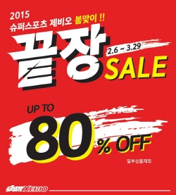 [쿠키뉴스=김 난 기자] 초대형 스포츠멀티샵 슈퍼스포츠제비오가 ‘2015 봄맞이 끝장세일’을 다음달 29일까지 50일간 전 점 동시 진행한다.
