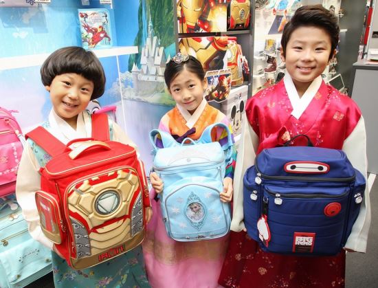휠라코리아는 설을 앞두고 초등학생을 위한 선물로 ‘디즈니 책가방’을 추천했다. 휠라와 휠라 키즈 브랜드는 2015년 신학기를 겨냥해 ‘겨울왕국’, ‘아이언맨’, ‘빅히어로’ 등 인기 애니메이션 주인공을 모티브로 한 캐릭터 책가방을 출시했다.