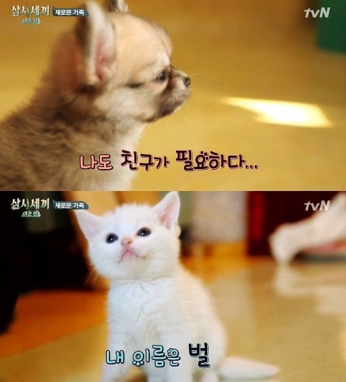 [쿠키뉴스=권남영 기자] tvN ‘삼시세끼’ 애완견 산체에게 고양이 친구 ‘벌이’가 등장했다.