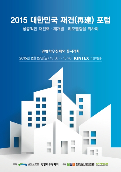 이런 가운데 국토교통부와 경향하우징페어가 공동 주최하고, 전국재개발재건축연합회와 도시재생신문이 주관하는 ‘2015 대한민국 재건포럼’이 2월 27일(금) 일산 킨텍스 3층 그랜드볼룸에서 개최된다.