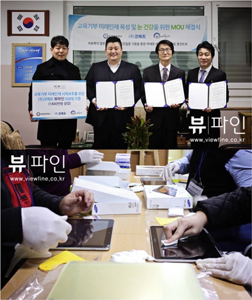 이번 협약에 따라 ㈜코메트는 스마트기기를 사용하는 학생들의 시력을 보호하기 위해 자사의 블루라이트 차단 시력보호 필름인 ‘뷰파인’을 기부하기로 했다. 뷰파인은 스마트 기기사용으로 인한 시력 저하를 예방하는 제품으로, 이번에 전달할 ‘뷰파인’은 총 1,800만원 상당에 달한다.