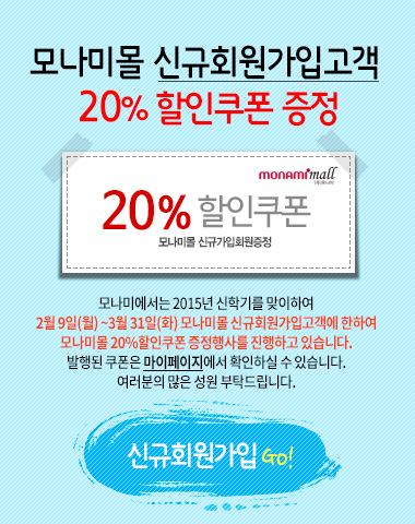 [쿠키뉴스=김 난 기자] 모나미는 다음달 31일까지 모나미의 인기 제품을 판매하는 공식 홈페이지 신규 가입자에게 전체 구매 금액의 20%를 할인해주는 쿠폰을 제공한다. 이외에도 모나미몰에서는 유성펜, 수성펜, 미술용품은 물론 고급 필기구, 다이어리까지 학기 중 필요한 다양한 문구류를 판매한다.