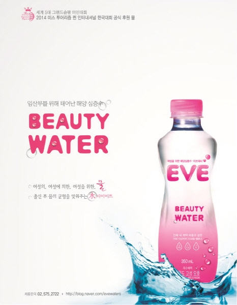 지난해 9월에 출시된 ‘이브워터’는 청정지역 강원도 고성이 ‘해양심층수 클러스터’로 지정되면서 ㈜강원심층수가 만들고 ㈜케이디와이가 판매하는 해양심층수로, 생수 시장의 블루오션으로 급부상하고 있다.