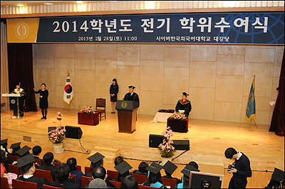 [쿠키뉴스=박주호 기자] 사이버한국외국어대학교와 사이버한국외국어대학교 TESOL대학원은 지난 28일 한국외국어대학교 서울캠퍼스 사이버관 대강당에서 2014학년도 전기 학위수여식과 입학식을 개최했다고 3일 밝혔다.