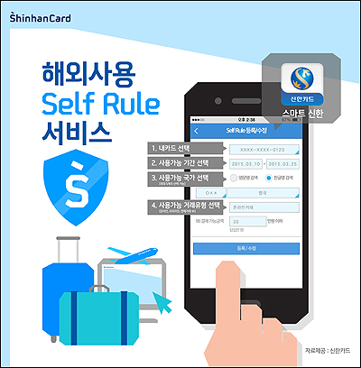 신청 및 변경 절차도 매우 간단하다. 해외여행 또는 해외직구 사이트를 자주 이용하는 고객은 사전에 해외 Self Rule을 신한카드 홈페이지나 ‘스마트신한 App'’에 설정하면 보다 안전한 해외거래가 가능해진다.