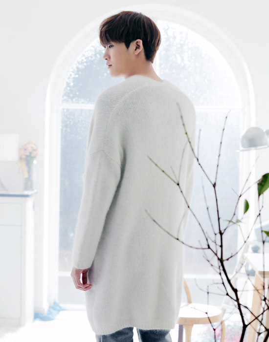 사진 속 박형식은 흰 색 스웨터를 입고 어딘가를 슬픈 눈으로 응시하고 있으며, 박형식의 넓은 어깨와 가슴 그리고 작은 머리 크기가 보는 이의 시선을 매료시키기 충분합니다.