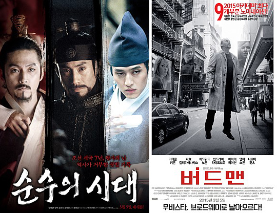 ‘킹스맨’의 압도적인 우세 속에 대체로 외화들이 강세를 보이고 있다. 이런 추세가 언제까지 지속될까. 기대작 ‘순수의 시대’ ‘헬머니’ ‘버드맨’ ‘살인캠프’ 등이 5일 개봉해 주목을 모은다. 12일엔 ‘살인의뢰’ ‘소셜포비아’ 등이 관객들에게 첫 선을 보인다. kwonny@kmib.co.kr