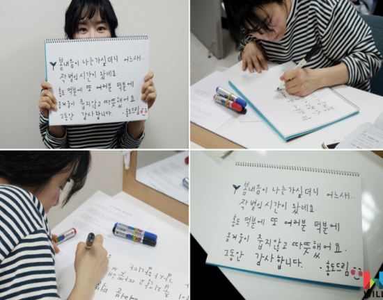 6일 최강희의 소속사 윌엔터테인먼트의 공식 페이스북에는 ‘하트투하트’ 대기실을 배경으로 종영소감 작성에 한창인 최강희의 모습을 담은 사진이 공개되었습니다.