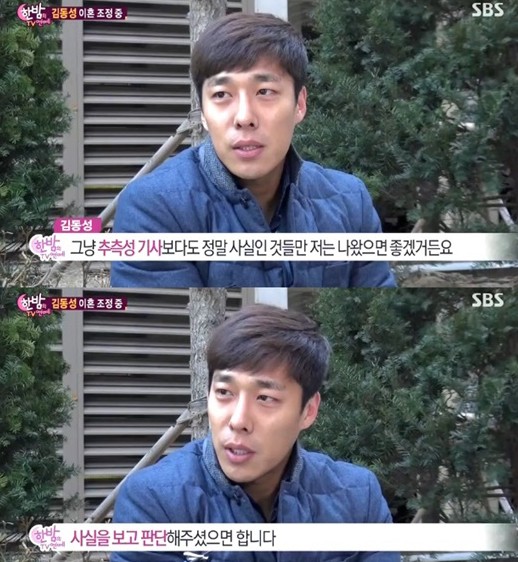 김동성은 11일 밤 방송된 SBS ‘한밤의 TV연예’와의 인터뷰에서 “마음고생이 심했다. 사람들 만나는 것 자체가 조금 힘들다”며 말문을 열었다. 그는 “추측성 기사보다 정말 사실인 것들만 나왔으면 좋겠다”며 “난 루머를 많이 경험해봐서 나만 상처받으면 되는데 주변 사람들까지 상처를 받더라”고 토로했다.