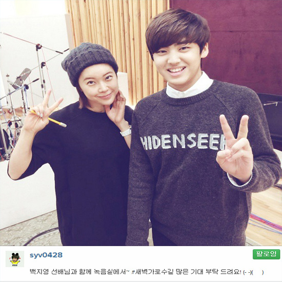 12일 오전 송유빈의 개인 인스타그램에 ‘백지영 선배님과 함께 녹음실에서. 새벽 가로수길 많은 기대 부탁 드려요!’라는 글과 함께 백지영과 함께 촬영한 사진을 공개했는데요.