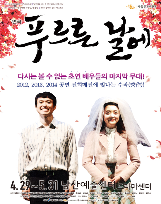 초연 이후 이 작품을 지켜 온 배우 이명행, 김학선, 정재은을 포함 20여명의 배우들이 이번 2015년, 5번째의 공연을 마지막으로 연극 ‘푸르른 날에’ 곁을 떠납니다.
