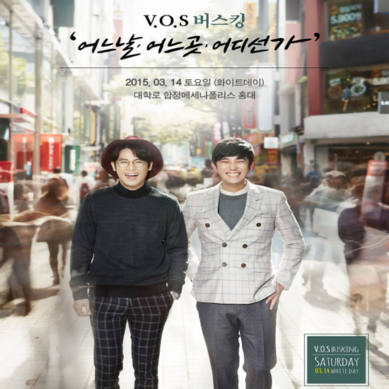 [쿠키뉴스=콘텐츠기획팀] VOS는 오는 14일 화이트데이를 맞아 오후 5시 서울 합정동 메세나 폴리스에서 열리는 솔로대첩에 등장, 싱글 남녀에게 신곡을 선사하며 ‘어느 날, 어느 곳, 어디선가’ 운명처럼 만날 자신의 짝을 기다리는 솔로들의 마음을 위로할 예정입니다.