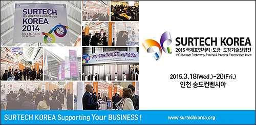 [쿠키뉴스=박주호 기자] 수도권 최대 규모, 최고 수준의 표면처리 산업 전문 전시회 ‘2015 국제표면처리·도금·도장기술산업전(SURTECH KOREA 2015)’이 오는 18일부터 20일까지 3일간 인천 송도컨벤시아에서 개최된다.