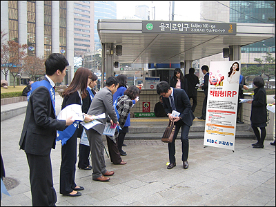 [쿠키뉴스=박주호 기자] 외환은행은 지난 17일 개인형퇴직연금(IRP)의 장점과 당행의 성과를 널리 알리고 이를 통해 신규고객을 유치하기 위한 대규모 가두홍보를 실시했다고 18일 밝혔다.