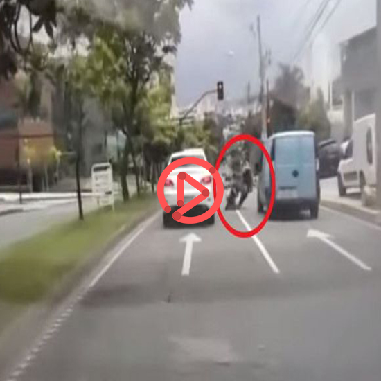 브라질 한 도로에서 오토바이 운전자가 흰색 차량과 아찔한 신경전을 벌이기 시작합니다.