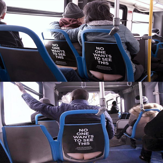 시카고 버스에 엉덩이를 소재로 한 이색적인 공익 광고가 설치돼 눈길을 끄는데요.