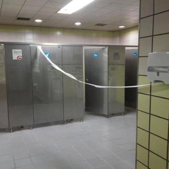 [쿠키뉴스=콘텐츠기획팀] SNS에 올라온 공용 화장실 내부 사진입니다.