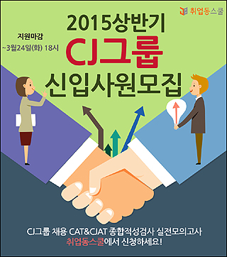 [쿠키뉴스=박주호 기자] 취업동스쿨은 CJ그룹에서 최근 발표한 ‘2015 상반기 CJ그룹 신입사원 모집’ 시험에 대비하는 인적성 동영상 강좌를 오픈했다고 24일 밝혔다.