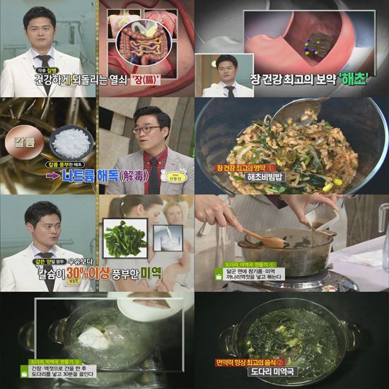 또 박 원장은 “장 건강 최고의 보약은 해초”라며 “해초는 미네랄이 풍부해 기운을 보충하는 데 최고의 식재료고, 또 해초에는 장 속의 숙변을 제거하는 불용성 식이섬유와 몸속 피를 맑게 정화하는 수용성 식이섬유가 풍부해 장 건강과 면역력 향상에 도움을 준다. 혈당 조절과 풍부한 칼륨이 들어 있어 나트륨 분해에 효과적”이라고 설명했습니다.