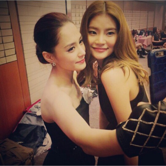 서로 얼굴을 맞대며 미소를 띠고 있는 한-중 미녀스타들의 훈훈한 우정에 눈길이 가는 한편, 중화권을 대표하는 미녀스타 옆에서도 한 치의 굴욕 없는 안다의 미모가 보는 이들의 시선을 사로잡고 있는데요.