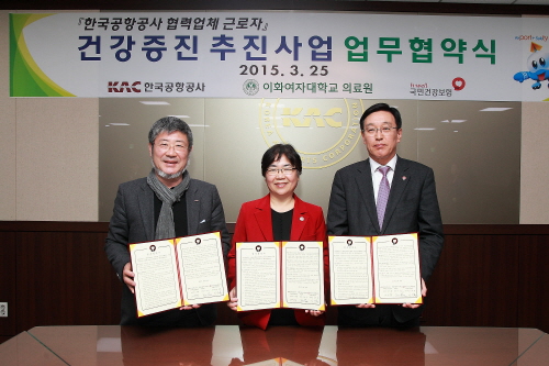 이화의료원은 지난 25일 한국공항공사 2층 대회의실에서 한국공항공사와 국민건강보험공단 서울지역본부와 '협력업체 근로자 건강증진 추진 사업 업무 협약 체결식'을 진행했다.