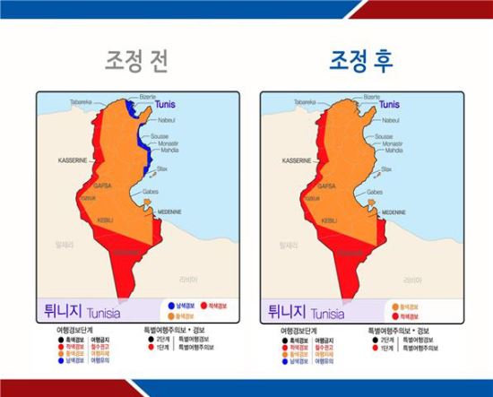 이번 여행경보 조정은 지난 18일 수도 튀니스 소재 바르도박물관에서 발생한 외국인 관광객 대상 총격 테러사건을 계기로, 현지에 체류하는 우리국민들과 관광객 안전을 제고하는 차원에서 이뤄졌다.