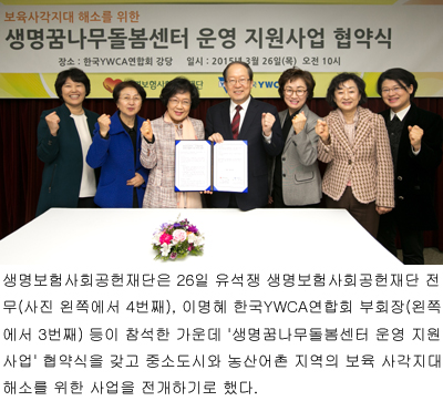 "한국YWCA와 ‘생명꿈나무돌봄센터’ 운영 협약… 아동 보육서비스 공동 노력키로
