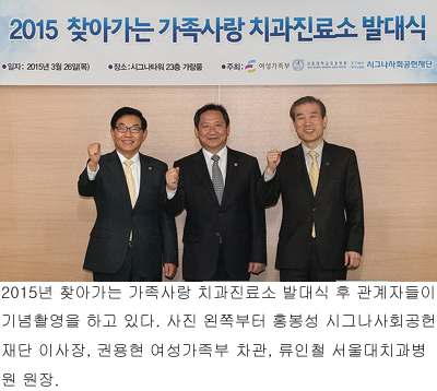 홍봉성 이사장은 “찾아가는 가족사랑 치과진료소 사업은 정부, 기업 및 공공의료기관의 협력사업으로 사회공헌사업의 바림직한 롤모델로 자리매김하고 있는 만큼 그 책임감 또한 막중하다”며 “상대적으로 의료혜택을 받기 어려운 취약계층의 건강을 증진하는 이 사업을 지속하기 위해 여성가족부와 서울대치과병원과의 함께 더욱 최선을 다하겠다”고 말했다.