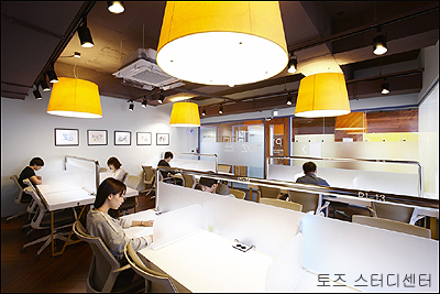국내 최초 공간서비스 그룹 토즈는 학습자의 유형에 따라 각기 다른 5가지 공간을 구성한 신개념 독서실 ‘토즈 스터디센터’로 예비 창업자들에게 각광받고 있다. 여러 사람과 어울려 소통할 때 학습 능력이 극대화되는 사회학습유형에게 적합한 개방된 형태의 ‘오픈스터디룸’, 시각에 예민한 시각학습유형에게는 시각적으로 뛰어난 인테리어를 적용한 ‘크리에이티브룸’ 등을 제공해 학습 효율 향상을 돕는다.