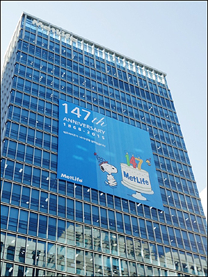 "[쿠키뉴스=박주호 기자] 글로벌 금융그룹 메트라이프(MetLife, Inc.)가 올해로 설립 147주년을 맞아 서울 역삼동 테헤란로에 있는 한국법인 메트라이프생명 본사 건물에 147주년을 축하하는 현수막을 설치했다.