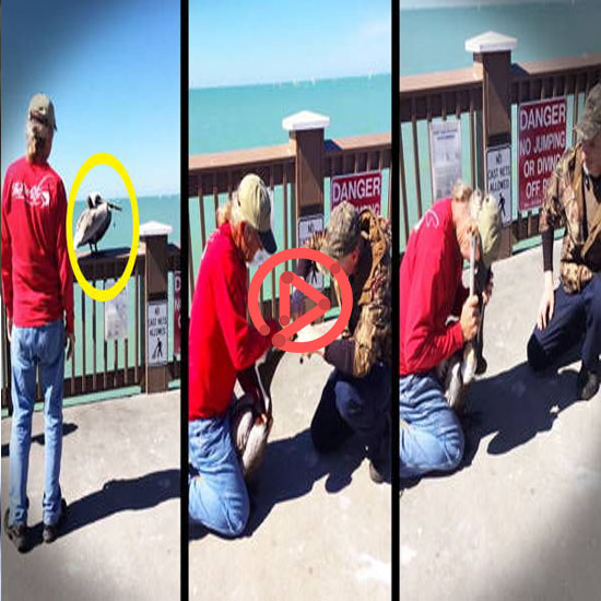 그 모습을 발견한 한 남성이 펠리칸을 향해 조심스럽게 다가가 다리를 부여잡는데요.