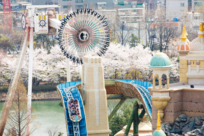석촌호수를 걸으며 즐기는 벚꽃과 함께 롯데월드 매직 아일랜드에서는 스릴 넘치는 벚꽃놀이를 즐길 수 있다. 다양한 놀이시설과 벚꽃을 함께 즐기려는 사람들로 롯데월드 매직 아일랜드는 북적인다. 360도 회전하며 아파트 25층 높이까지 올라가는 ‘자이로드롭’, 석촌호수로 빠질 것 같은 짜릿함을 선사해주는 ‘자이로스윙’을 타며 하늘 가까이에서 석촌호수 변을 가득 메운 벚꽃을 한 눈에 감상할 수 있다.