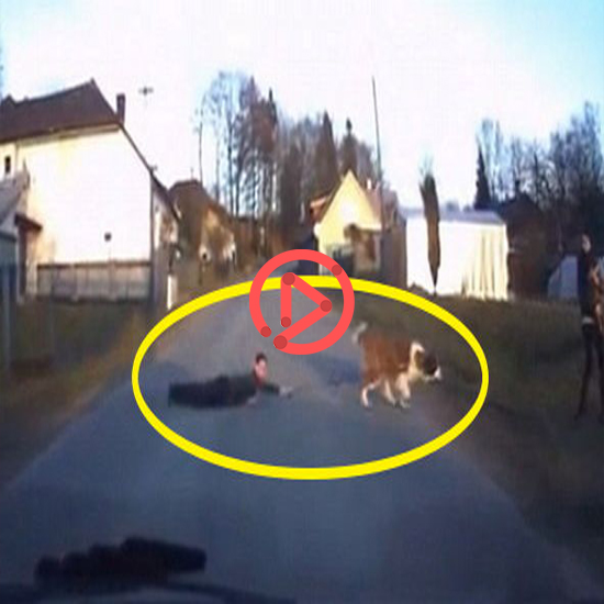 대형견인 세인트 버나드 종이 한 소년을 질질 끌면서 도로를 건너가고 있었던 것으로, 소년은 자신의 반려견을 데리고 산책을 하려 했는데, 상황이 뒤바뀌어 반려견이 소년을 산책(?)시켜 준 셈이 된 것입니다.