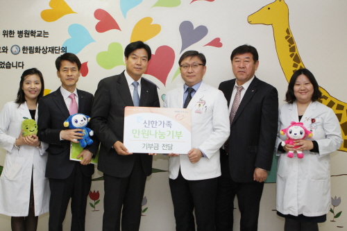 신한은행 박인우 본부장(서부금융본부)은 이날 전달식에서 “전 직원들이 동참한 작은 나눔의 실천이 의미 있는 사업에 쓰일 수 있게 돼 기쁘다”며 “지속적인 관계를 통해 복지 사각지대에 놓여있는 어려운 환아들을 도울 수 있었으면 한다”고 말했다.