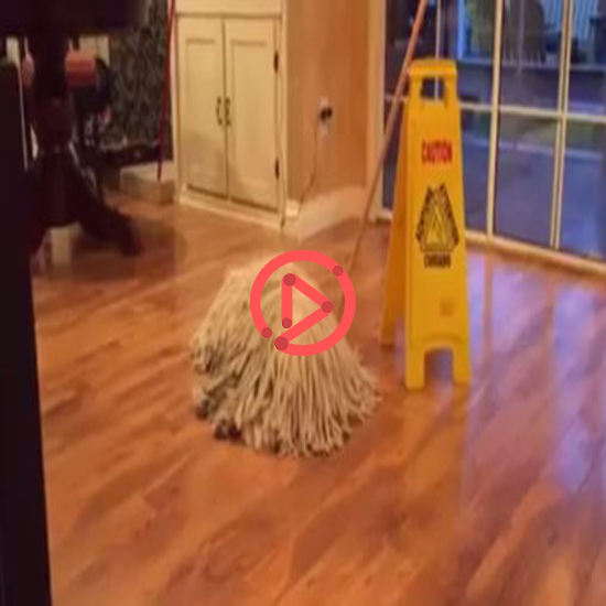 주인이 막대기와 안전 표시판까지 철저하게 준비해 강아지를 대걸레로 위장시켜 기막힌 영상을 만들어 낸 것입니다.