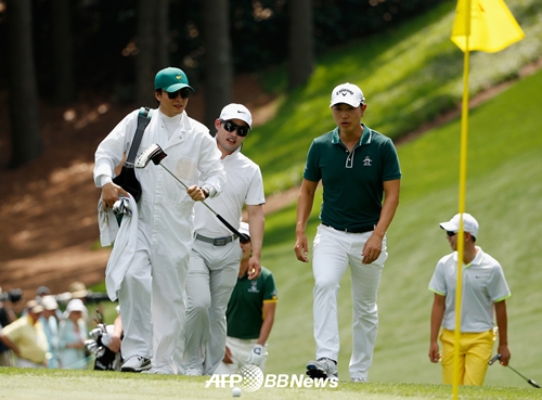 [쿠키뉴스=조현우 기자] 배우 배용준이 제79회 마스터스 골프 토너먼트가 열린 미국 조지아 주 오거스타의 오거스타 내셔널 골프장에서 배상문(29)의 캐디로 깜짝 변신했다.