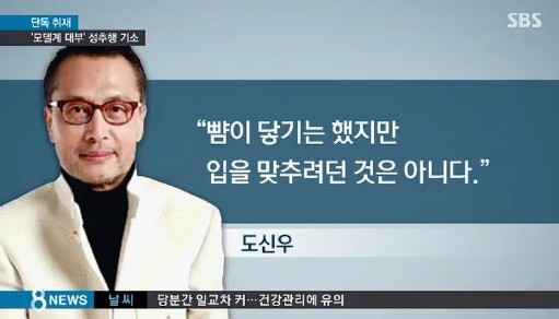서울동부지검 형사3부(부장검사 이태승)는 자신의 회사 여직원에게 강제로 입을 맞춘 혐의(업무상 위력 등에 의한 추행)로 모델센터인터내셔널 회장 도신우(70)를 기소했다고 9일 밝혔다.