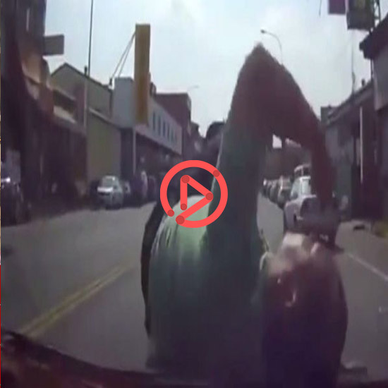 이대로 돌아가는가 싶더니 잠시 후 달리던 또 다른 차량으로 뛰어들어 몸을 부딪치는 액션을 취합니다.